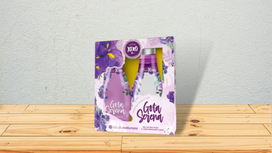 O Kit Presente Gota Serena é o mais novo produto da linha Coleção Xêro, da Cia da Natureza. Com fragrâncias inspiradas na perfumaria fina internacional, o kit é composto por uma colônia e uma loção hidratante.