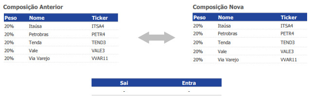 Com isso, saíram Minerva (BEEF3) e Engie (EGIE3) para a entrada de Ambev (ABEV3) e Equatorial (EQTL3).