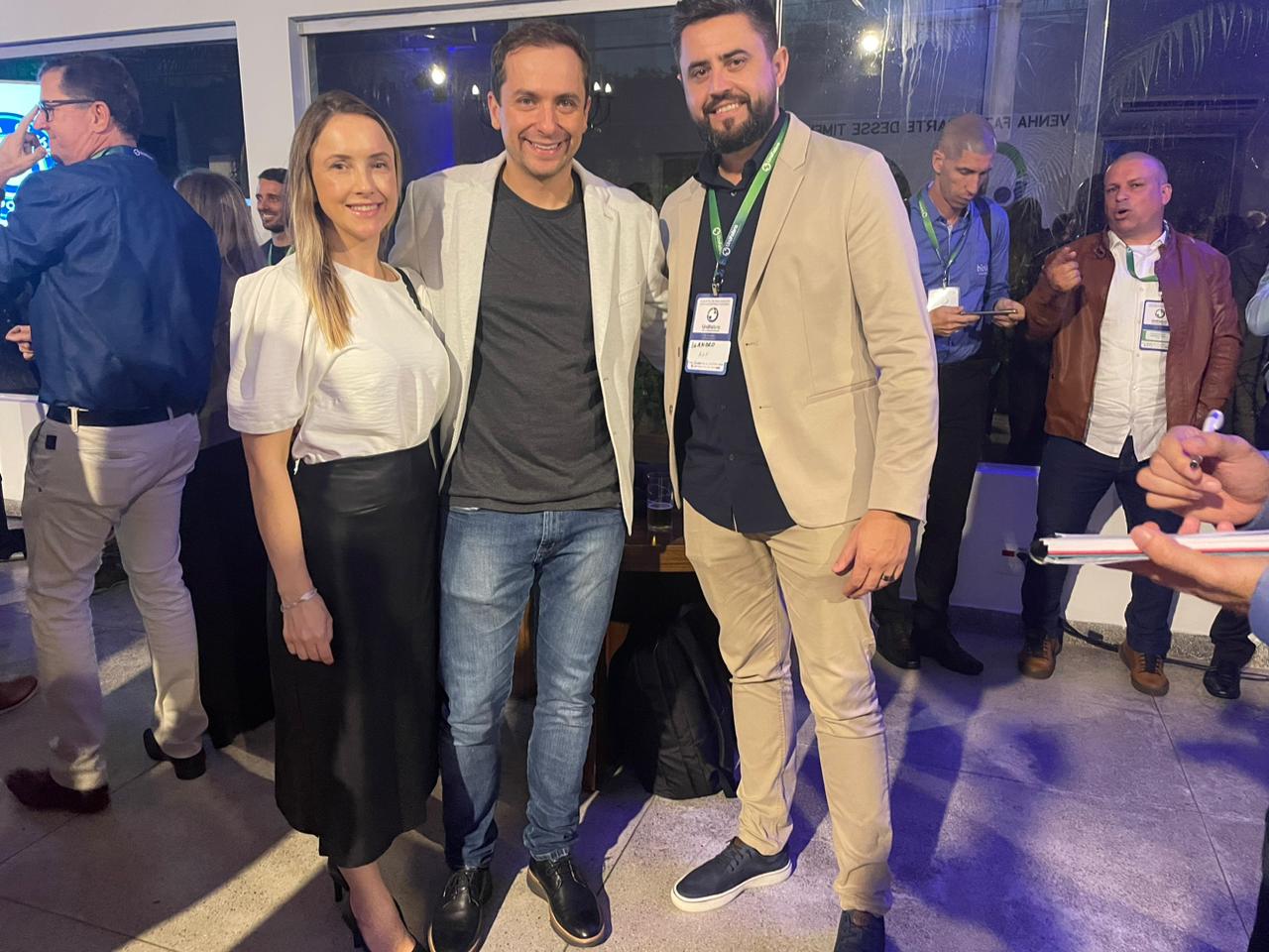 Redes e indústria afinados - Priscila e Guilherme Strapasson, da Unipreço, e Leandro Kluber (A2F) - Redes e indústria afinados – Priscila e Guilherme Strapasson, da Unipreço, e Leandro Kluber (A2F)